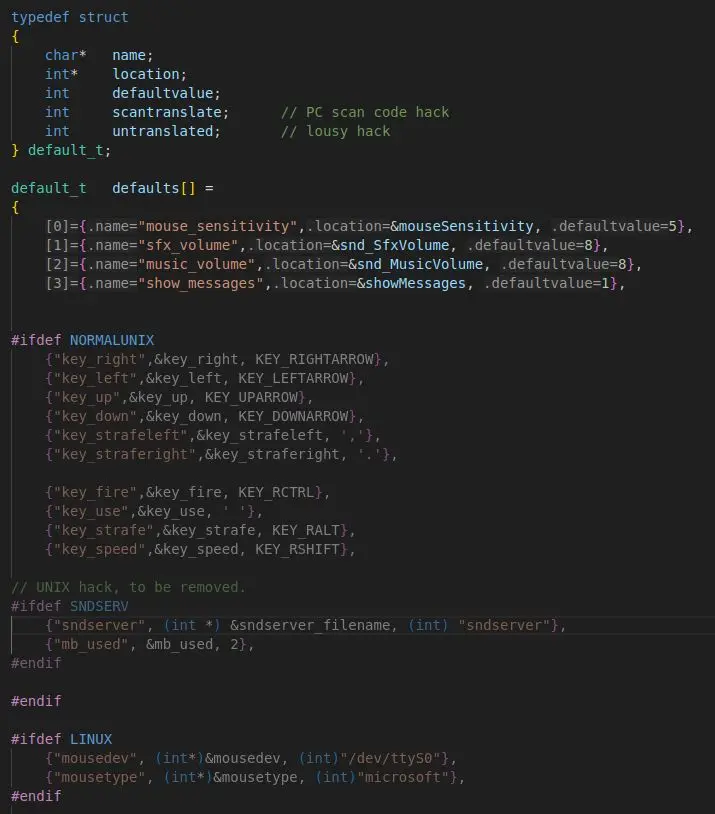 The piece of code in question is this.It is the initialization of the Struct that contains the default settings.