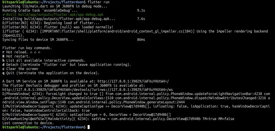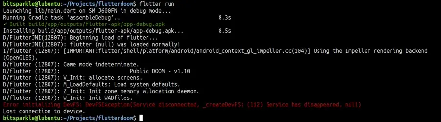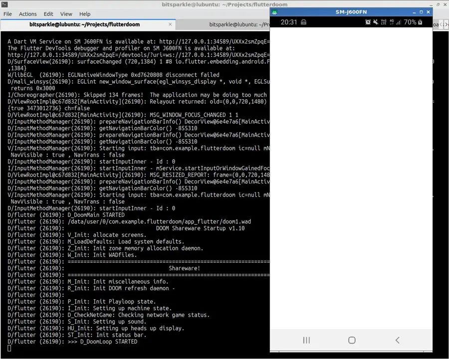 In the end, the code was compiled on Linux and the game started.This will serve as the foundation for the Flutter implementation.