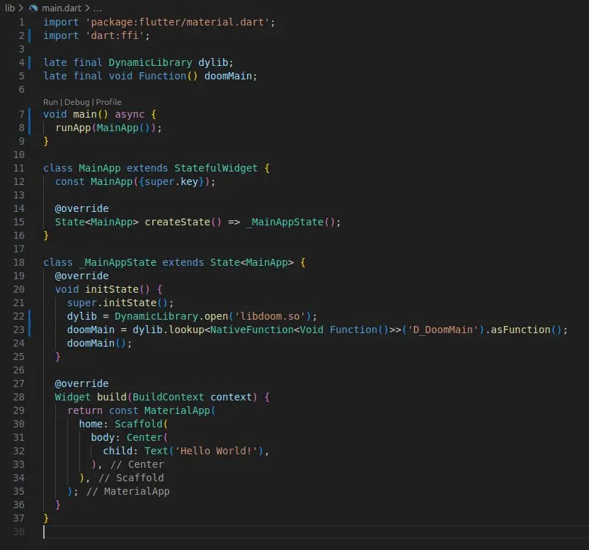 So I created a new empty Flutter project and copied/pasted the Doom source inside it.